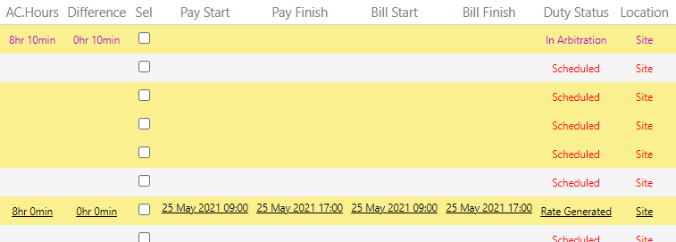 From Timegate Web 21.3 onwards, it is now possible to view Pay (Start and Finish) and Bill (Start and Finish) Times in all Duty Filter views (not just during Quick Arbitration), making viewing duties requiring approval easier. This is controlled at a user level from within the Duty Filter Configure Gridsettings page.