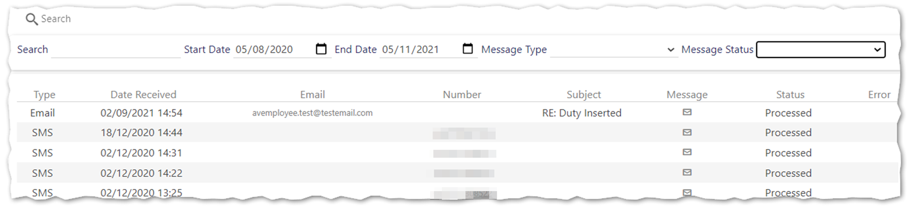 Select a Message Type as appropriate (Email or SMS). By default both Email and SMS messages are shown
