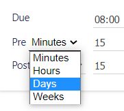 Daily/Weekly/Monthly recurrence patterns – Pre and Post window values are represented in Minutes, Hours and Days
