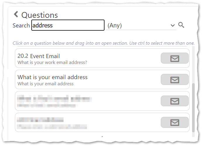 Locating questions that you have created to use when designing a form can be challenging. Recognising this, from Timegate Web v21.4 onwards, we have updated the Timegate Web interface to make it easier for administrators to find what they are looking for. Within the Service Forms design view (Admin | Forms | Service Forms) a scroll bar has been introduced enabling you to scroll through up to ten questions displayed on the screen at a time. If there are more than ten questions you can move from page to page in the same way you always could, using the page numbers at the bottom of the Questions list. Question name, type and text are now all displayed to aid searching further. Users can search by Question Name, Question Type or text. This should speed up locating questions and aid the re-use of questions by different users (thus reducing time, effort and duplication of similar questions). An example of the new interface is shown below. The word "address" has been used as the search criteria: