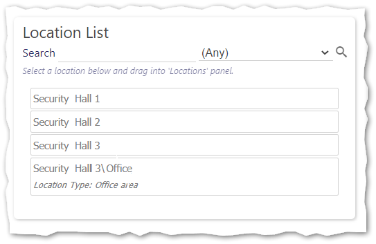 When designing a Tour, finding Locations that you have previously created can be challenging. Recognising this, from Timegate Web v21.4 onwards, we have updated the Timegate Web interface to make it easier and for administrators to quickly find the location that they are looking for. Within the Set Up | Site | Services | Tours view, the Location List panel has been enhanced by adding search facilities and a filter. You can search by Name or Location Type, and filter by Location Type. Within the search results, Locations are now displayed with their full path and type. Users will only see the Location Type for the selected Tour Location, not the parent Locations. An example is shown below: